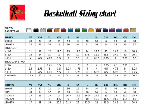 Basketball Sizing chart